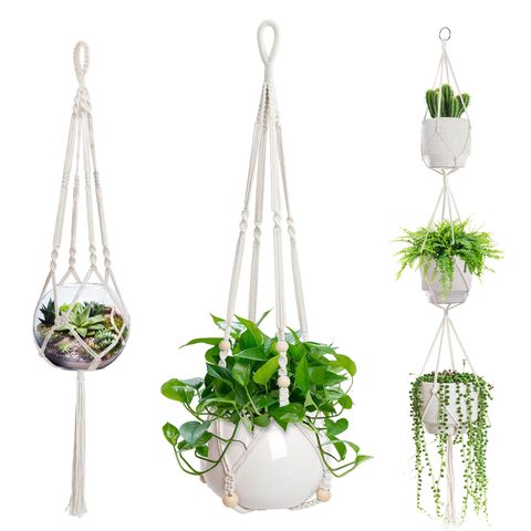 Soporte de cuerda de algodón de macramé hecho a mano para jardín hogar tejido cáñamo decoración maceta cesta colgante soporte de maceta